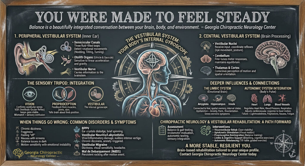 You Were Made to Feel Steady We take balance for granted—until it is gone. Whether it is a sudden wave of dizziness while turning your head, a vague sense of disequilibrium in crowded environments, or full-blown vertigo, dysfunction in the vestibular system can turn everyday life into a … [Read more...] about How the Vestibular System Shapes Balance, Emotion, and Autonomic Health