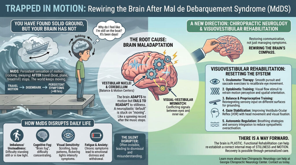 You Have Found Solid Ground, But Your Brain Has Not You step off a boat, a plane, or a treadmill. But instead of returning to the stability of dry land, it feels like you are still in motion. The floor rocks beneath you. The room gently sways. Days go by—and the sensation does not stop. This … [Read more...] about Trapped in Motion: Rewiring the Brain After Mal de Debarquement Syndrome